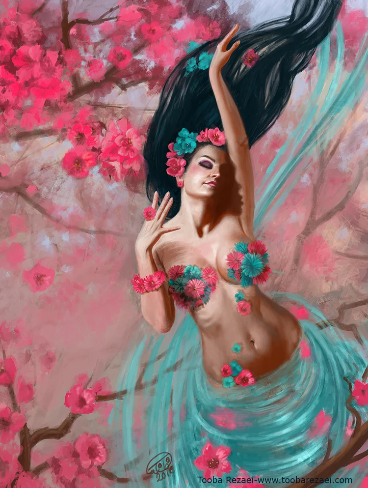 My painting ''Anahita'' for the Gods and Goddesses book. It has been selected also for the 6th Annual ARTundressed exhibition in Miami, Florida. Anahita is the ancient Iranian Goddess of water and fertility.